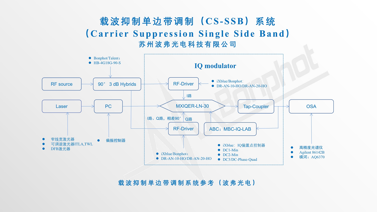 目前蘇州leyu集團光電科技有限公司提供的基于法國iXblue公司的高消光比IQ調制器(MXIQER)、配合我們提供的驅動(DR-AN-10-HO/DR-AN-20-HO)以及偏置控制器(MBC-IQ-LAB-A1),可以實現>30dB(1000:1)載波抑制比,具有無可比擬的性能及優勢。